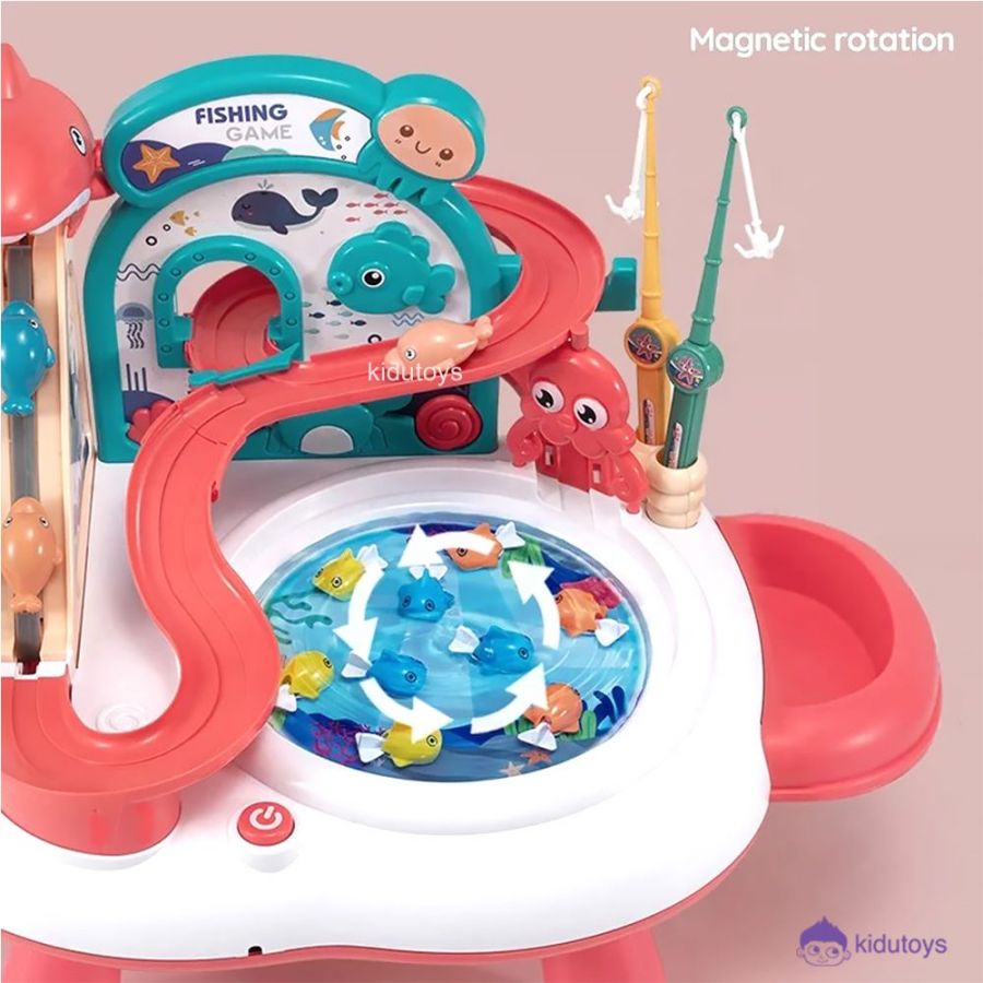 Spesifikasi : Berat 1.350gr, ukuran P: 38 L: 32 T: 11cm, usia 3 tahun+, terdapat musik, 3 ikan besar, 10 ikan kecil, pancingan dan menggunakan 3 baterai AA.