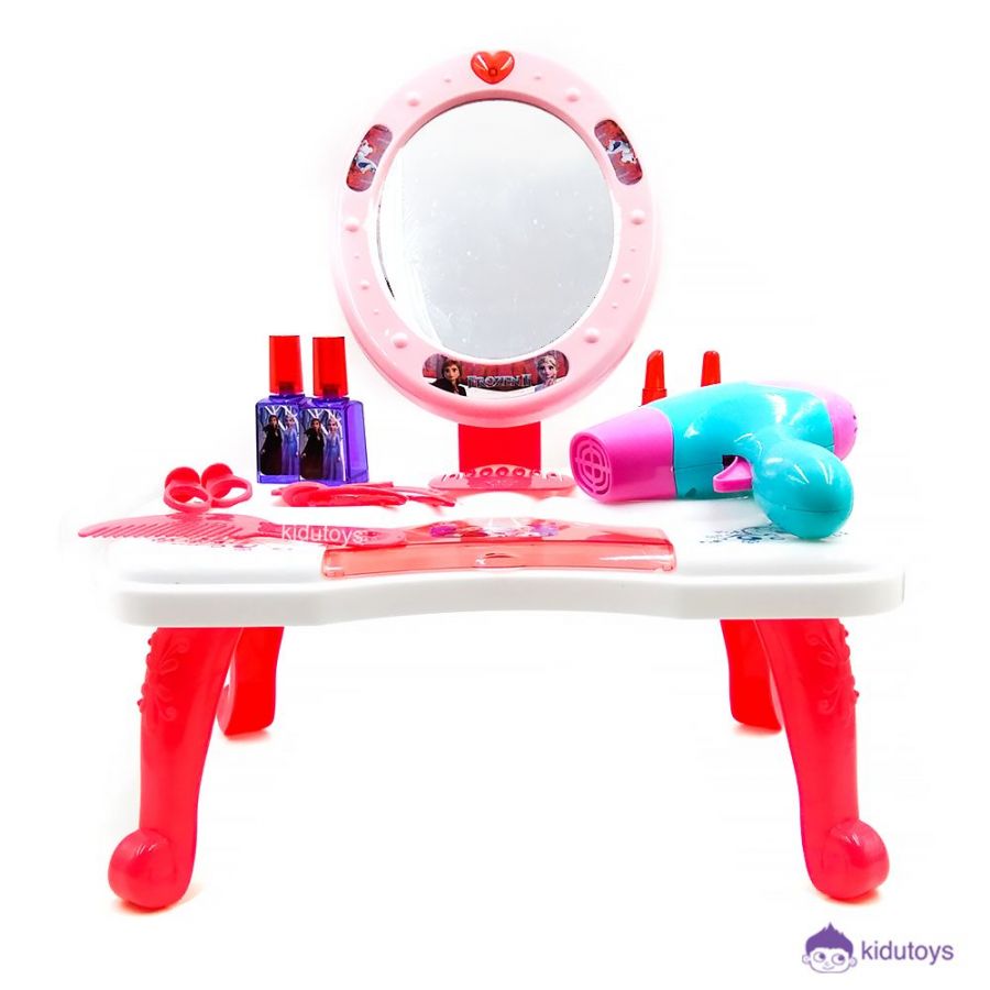 Spesifikasi : Berat 550gr, Ukuran P: 33cm, L :23cm, T: 8cm, Isi : 1pcs stiker, 1 cermin,1 hair dryer,1 sisir 4 jepitan, 2 lipstik, untuk usia 3 tahun + .