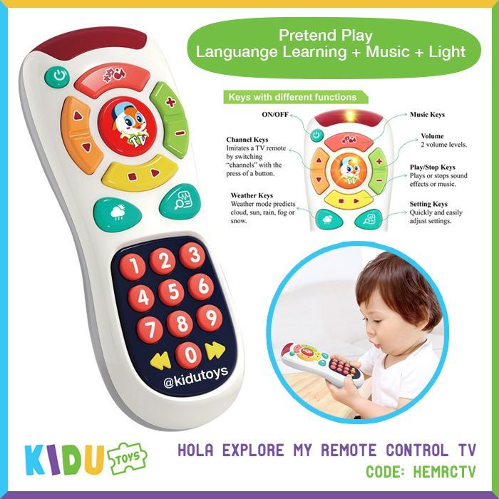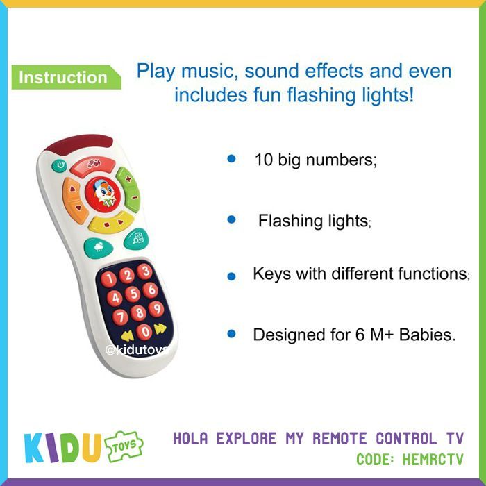 Spesifikasi : Berat 320gr, ukuran P: 12cm L: 16cm T: 5cm, usia 6M+, terdapat 1remote pakai 2baterai.
