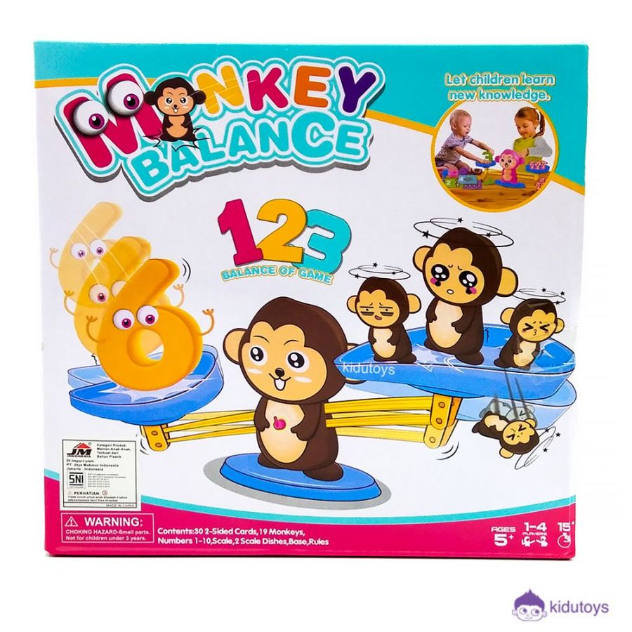 Spesifikasi : Berat 658gr, P: 28cm L: 28 cm T: 9cm, usia 5 tahun+, isi: 19pcs monkey, 30 pcs kartu, angka 1-10 .