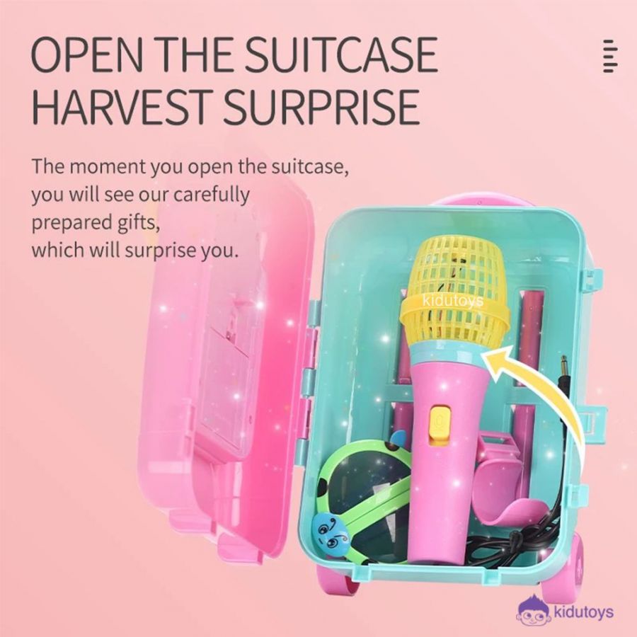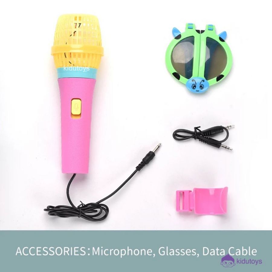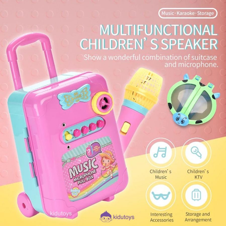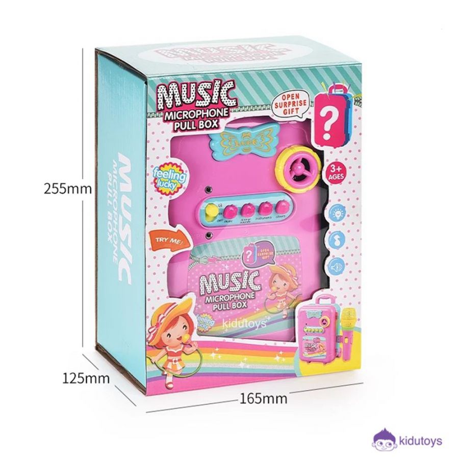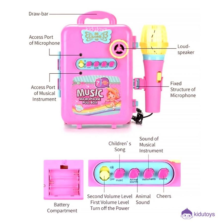 Spesifikasi : Berat 420gr, ukuran P: 25cm L: 18cm T: 15cm,terdapat: 1 music box, 1 mic, usia 3 tahun+, Mainan menggunakan 3pcs baterai + music.