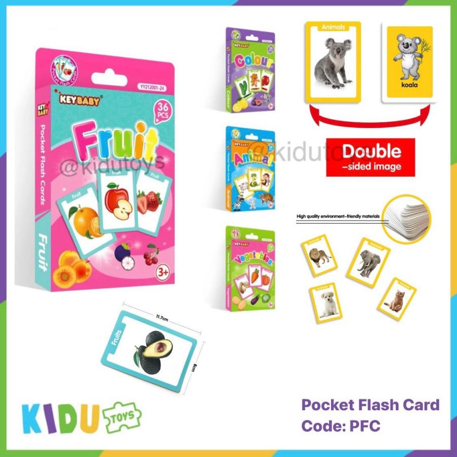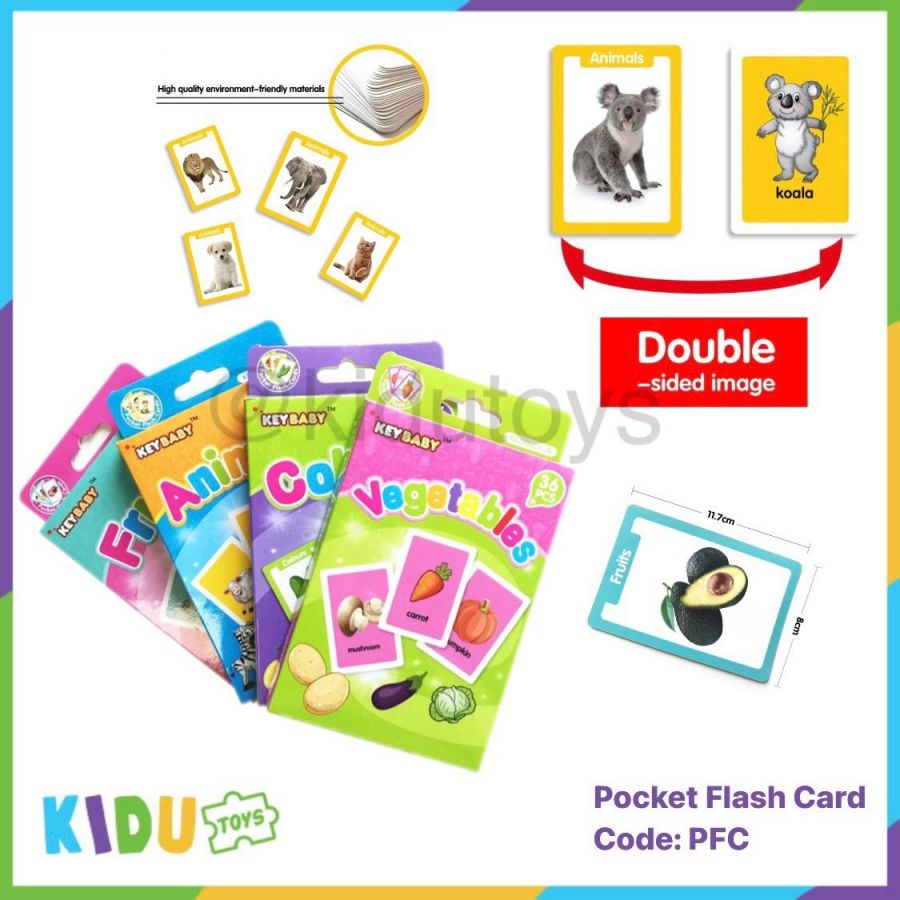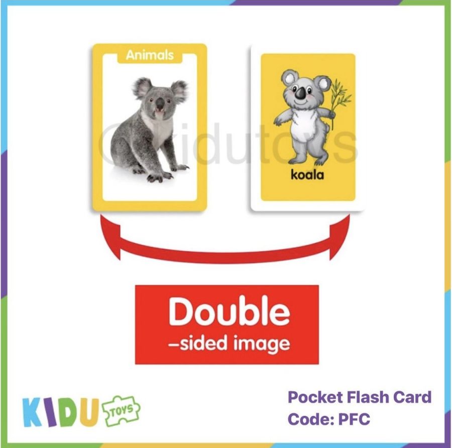 Untuk usia 4 tahun, ada dua sisi gambar pada tiap kartu, 36 kartu di tiap kotak.