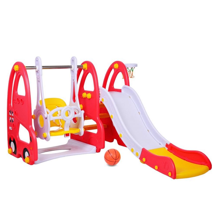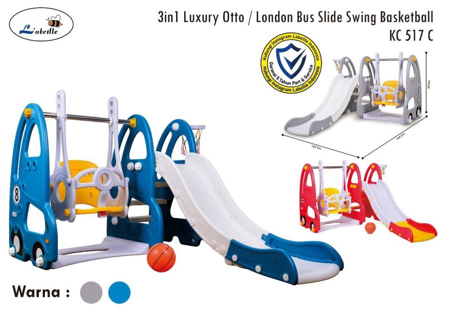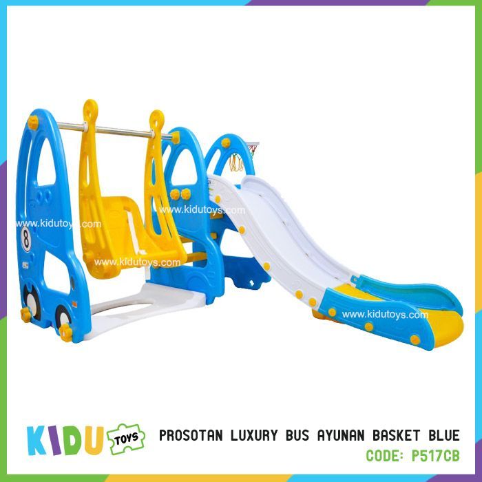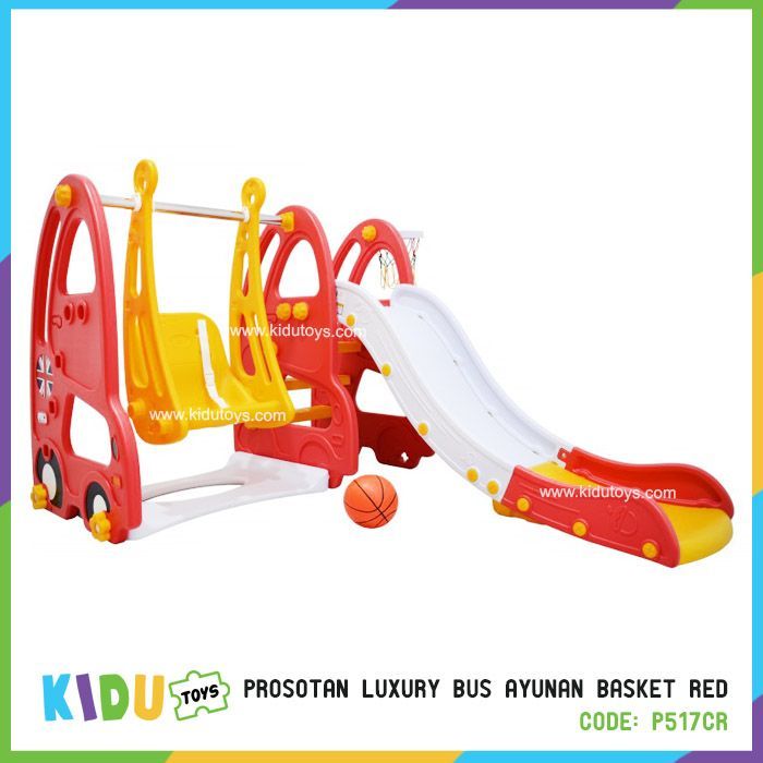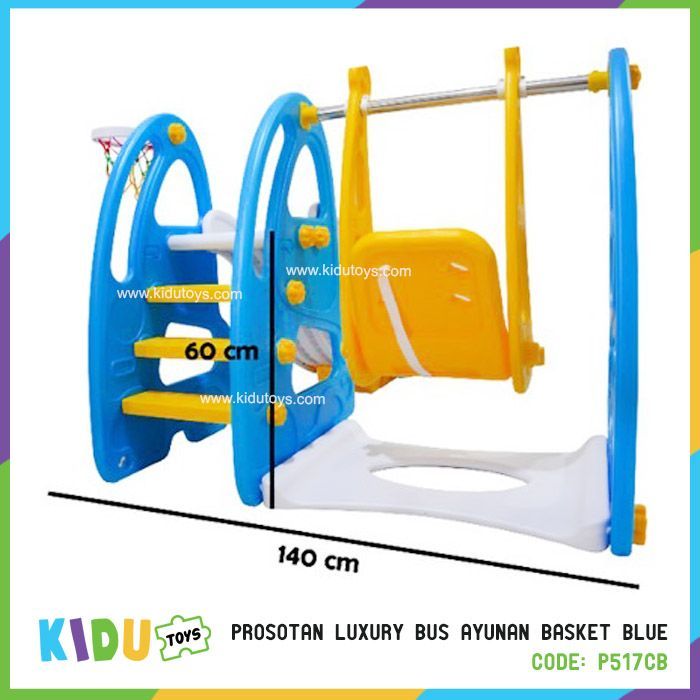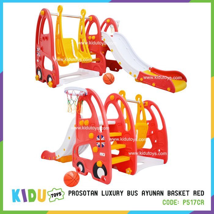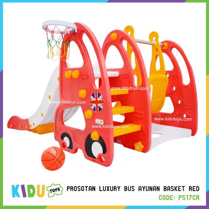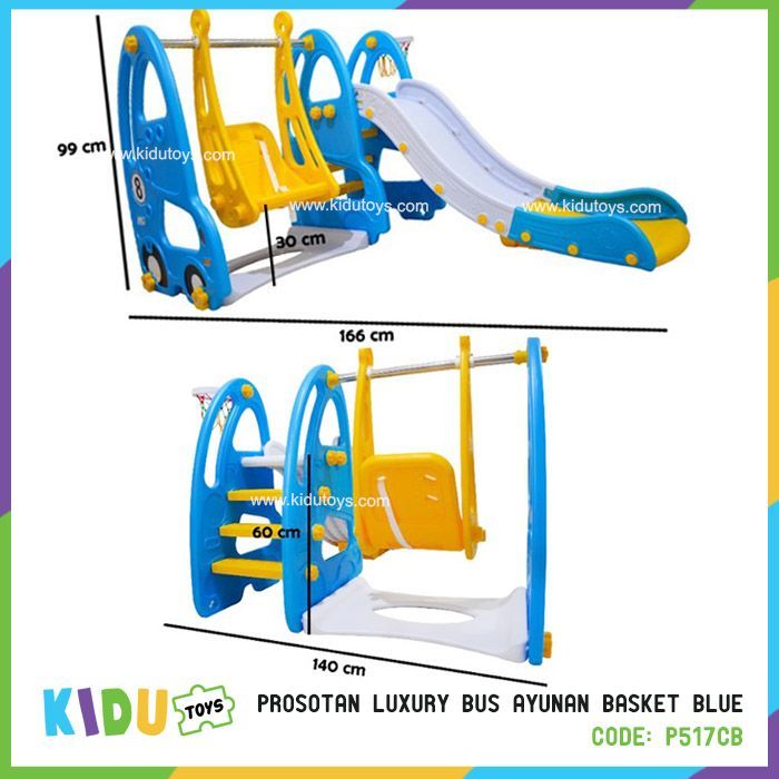 Spesifikasi : Terbuat dari bahan plastik yang aman, Perosotan dengan bentuk mobil yang dilengkapi dengan ayunan dan ring basket, Latihan untuk memanjat, meluncur dan bermain basket, Berat beban maksimum penggunaan perosotan 35 kg, Berat beban maksimum penggunaan ayunan 20 kg, Mengembangkan kemampuan koordinasi dan motorik, Mudah dipasang dan mudah dibersihkan, Dapat dimainkan di dalam dan di luar ruangan, Ukuran barang = 166 x 140 x 99 cm | Panjang perosotan = 155 cm, Lebar Perosotan = 35 cm, Tinggi dari lantai