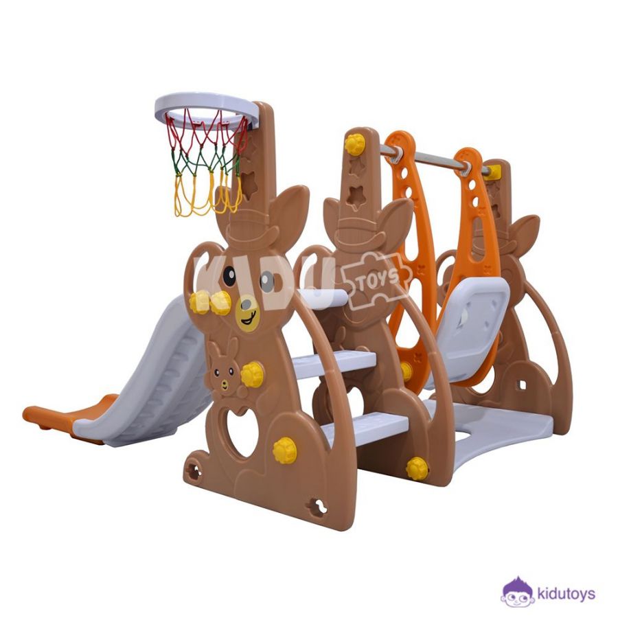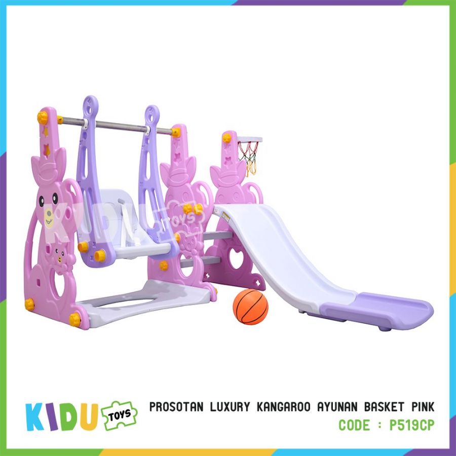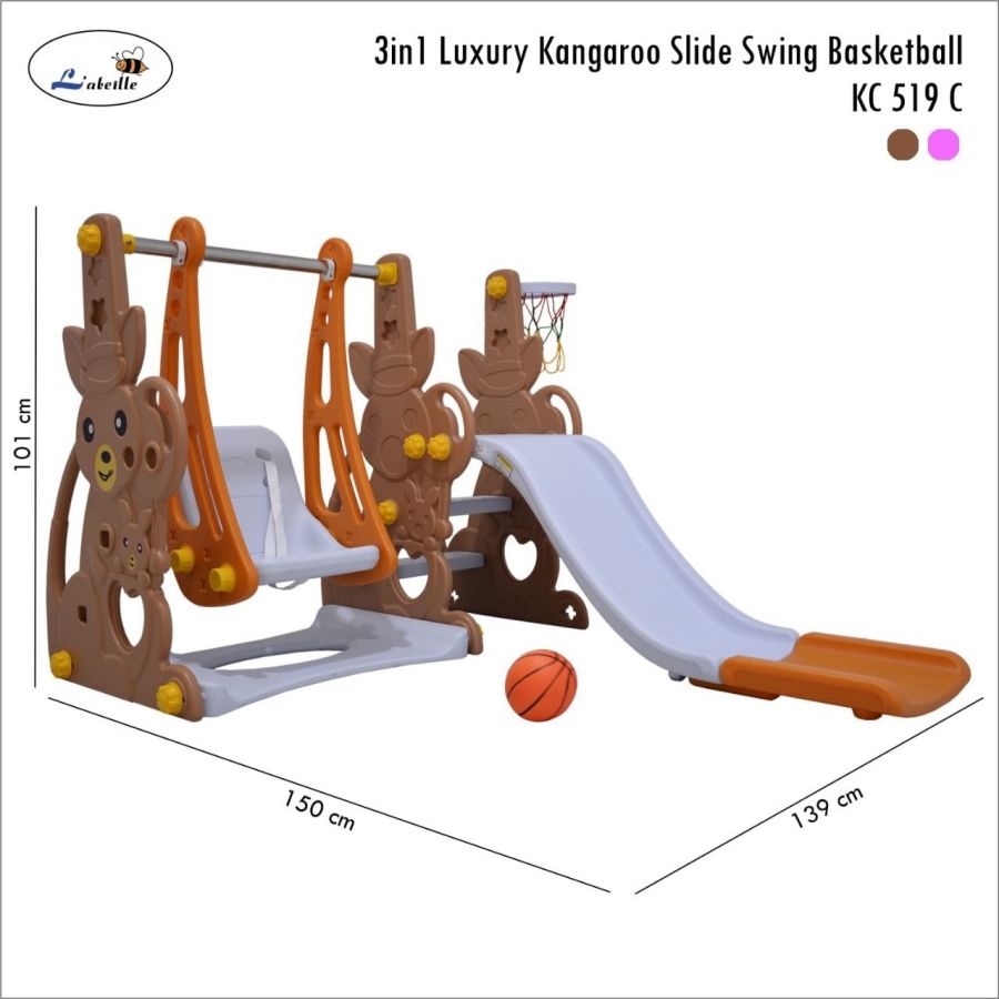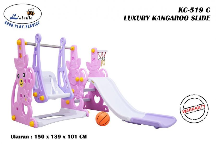 Spesifikasi : Mainan perosotan dengan tema mom & baby Kangaroo yang menggemaskan untuk menemani keceriaan si kecil bermain. Hadir dengan ring basket dan bola mini, papan perosotan dilengkapi papan landasan untuk mendarat lebih halus dan nyaman. Anak tangga lebar anti slip dilengkapi papan pegangan yang nyaman dikedua sisinya. Slide ini terbuat dari plastik yang aman BPA Free dan ber-SNI,Beban maks perosotan 35kg,Tinggi dari lantai ke anak tangga paling atas 49cm, Lebar papan perosotan 35 cm, Tinggi dari lantai